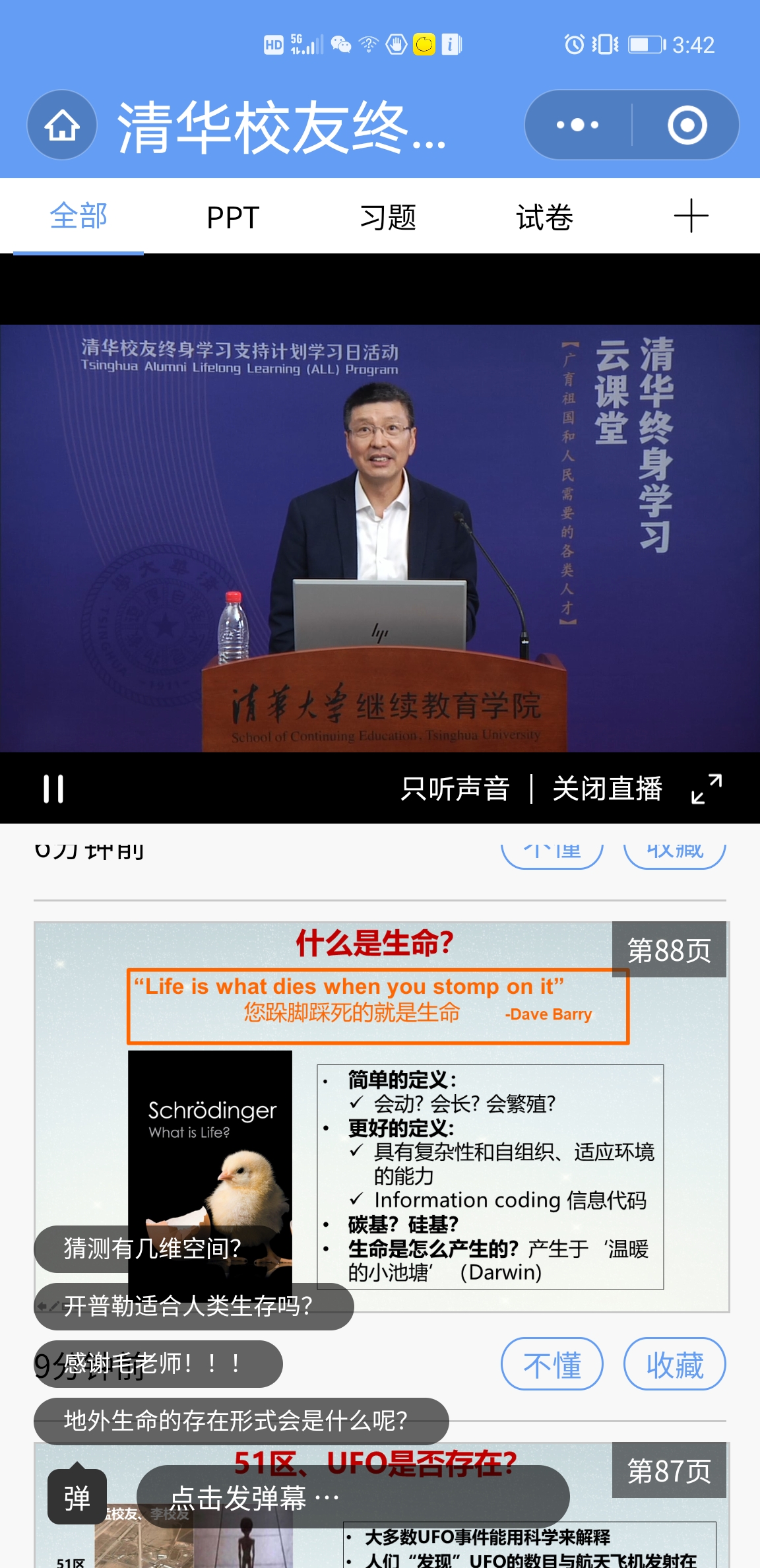 本次校友学习日活动正值清华110周年校庆来临之际,校友们通过在线学习的方式重温母校课堂,透过电波与母校紧密相连。课堂上弹幕提问、“惊现”点名、校友间互动、脑洞大开的答题、随机奖励等形式让校友们仿佛重回学生时代,体现了校友们不忘初心、持续学习的热情与活力。校友们在弹幕留言中纷纷表达对学生时代的无限眷恋与对母校的思念之情。