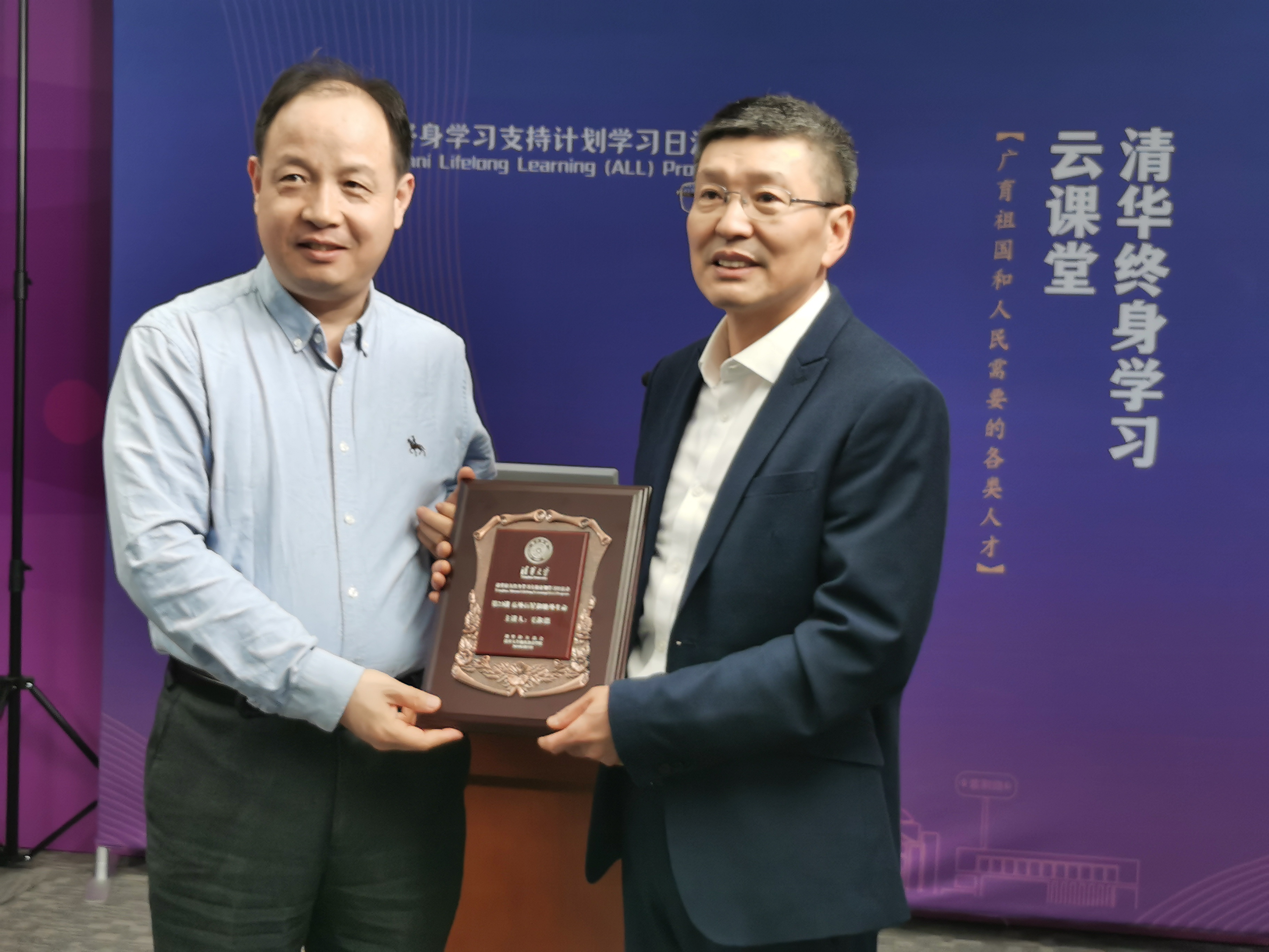 美加墨世界杯官方网站继续教育学院副院长郭钊全程参加线下学习,并代表活动组织方向毛淑德教授赠予了校友学习日活动纪念牌。清华2012届社科学院校友舒美主持本次活动;继教学院在线办全程进行直播保障。