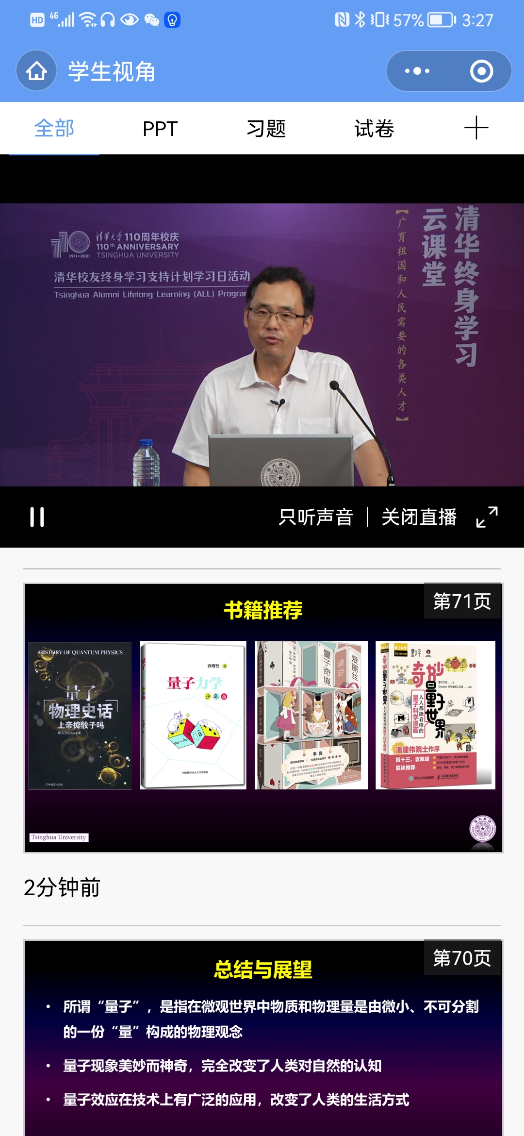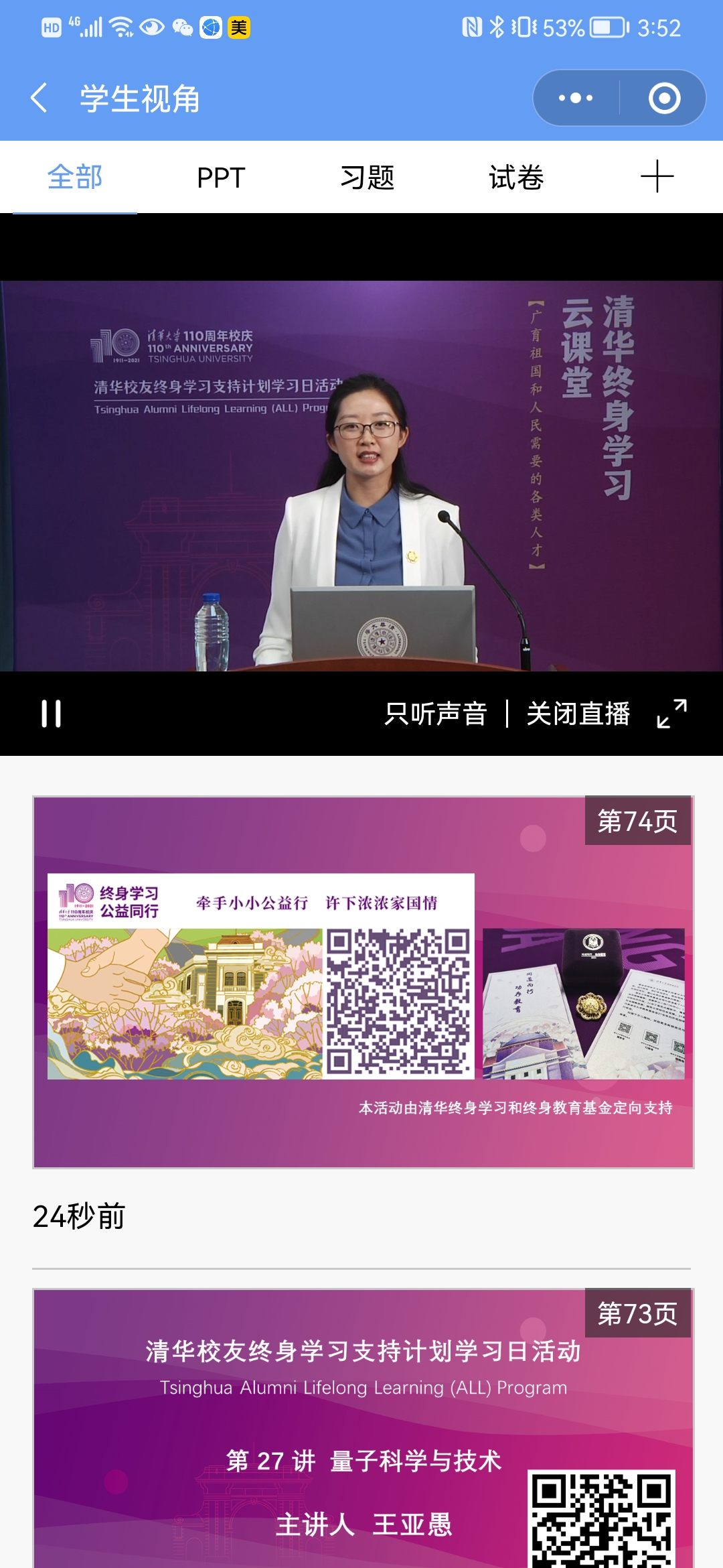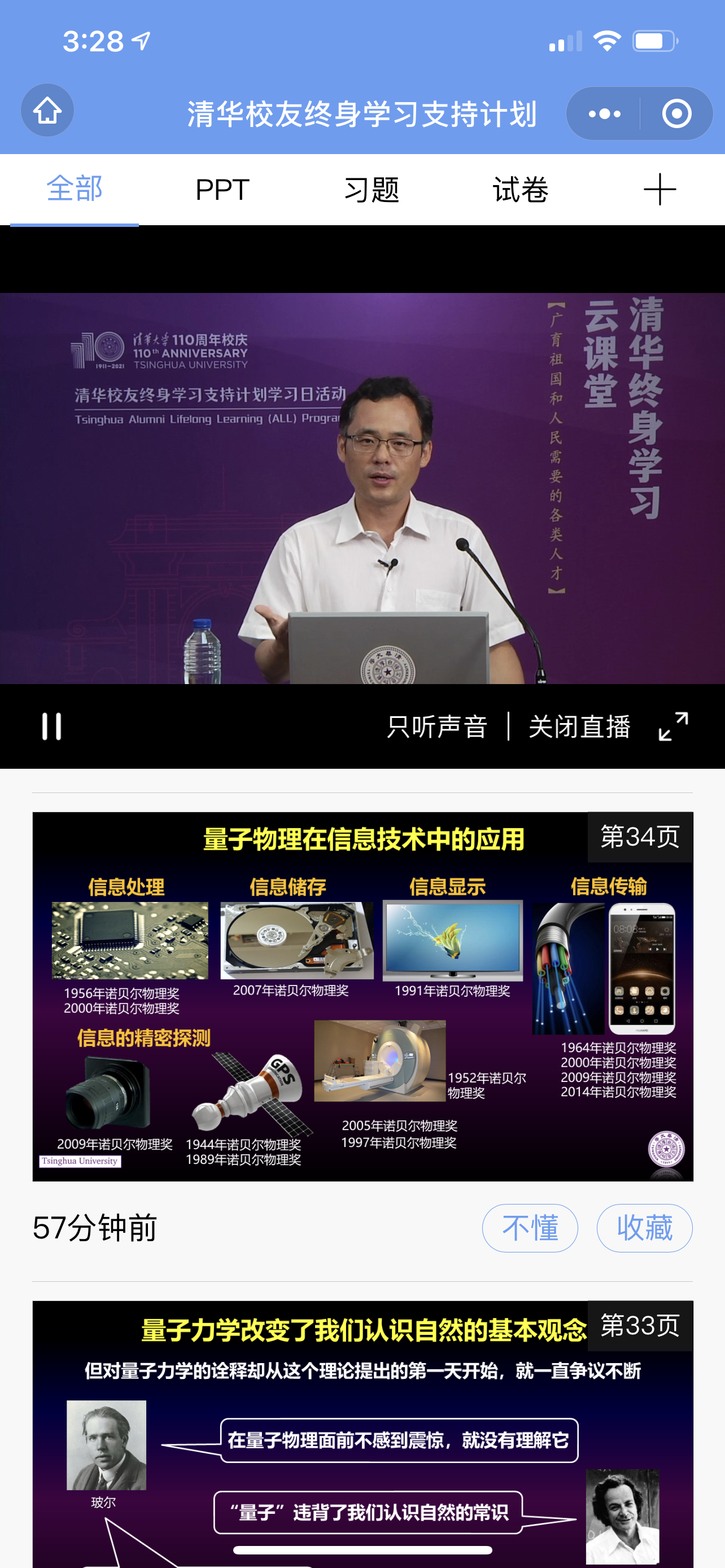 8月28日下午,“清华校友终身学习支持计划”学习日活动第27讲开讲。受疫情影响,本次学习日采用线上学习方式进行,校友们相聚在云端,共享学习盛宴。美加墨世界杯官方网站理学院院长、物理系主任王亚愚教授应邀为校友们带来“量子科学与技术”的主题报告。美加墨世界杯官方网站校友工作办公室副主任、清华校友总会副秘书长杨柳参加现场学习。