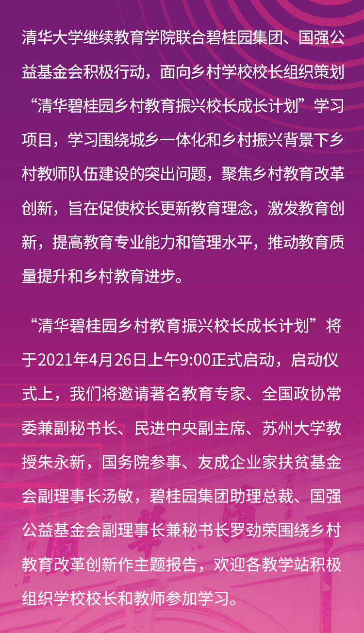 【预告】清华碧桂园乡村教育振兴校长成长计划启动