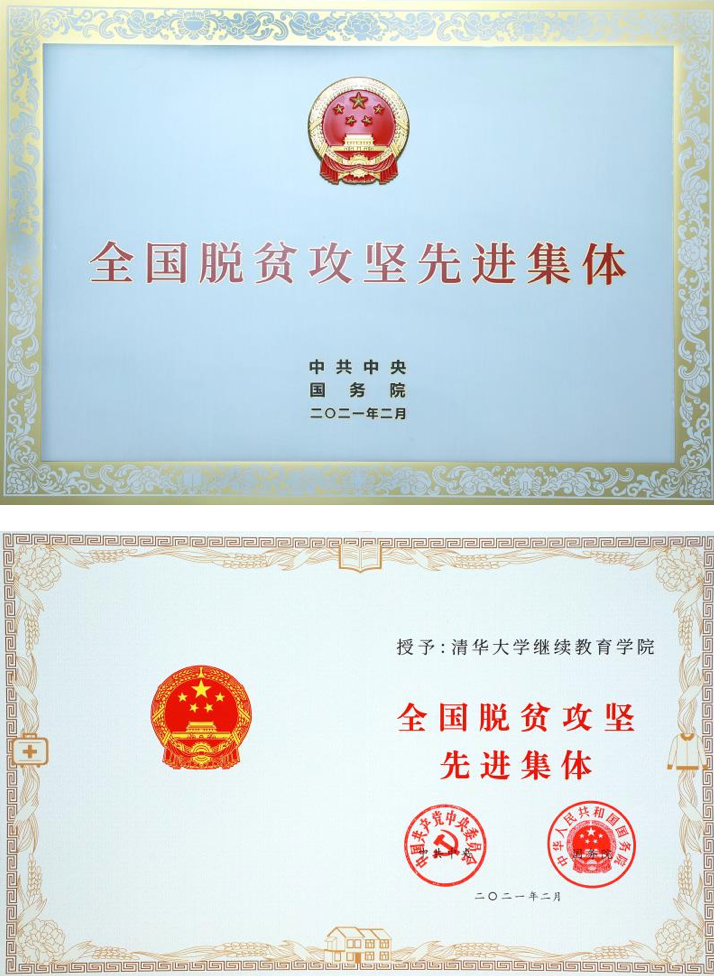 美加墨世界杯官方网站继续教育学院荣获的“全国脱贫攻坚先进集体”奖牌和证书(美加墨世界杯官方网站档案馆藏)