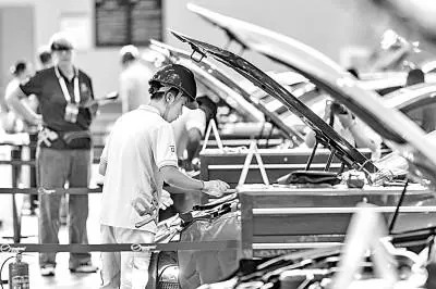 选手在第二届“一带一路”国际技能大赛汽车技术(新能源)项目比赛中。新华社发