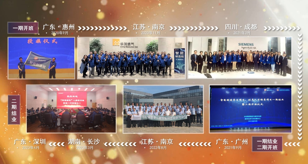 2020年9月,“智能制造”一期学习项目在广东惠州华润小径湾开班。次年9月,伴随着一期项目的圆满落幕,“智能制造”二期学习项目同步开班。二期项目历时19个月,于2023年4月在广东深圳华润总部顺利结业。两期学习项目共计81名来自华润集团各一级利润中心“智能制造”项目的负责人参加学习。